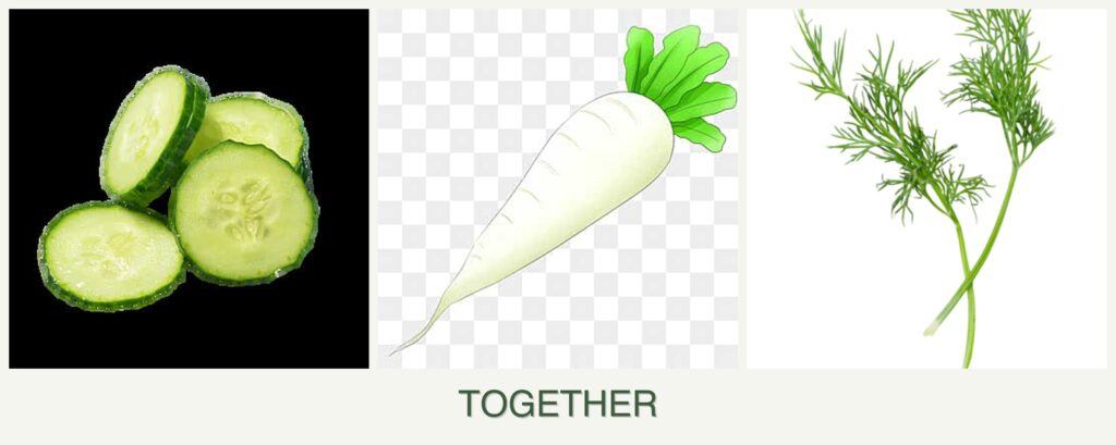 Can you plant cucumbers, radishes and dill together?