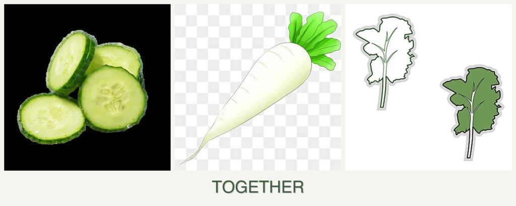 Planting cucumbers, radishes, and kale together offers several benefits: