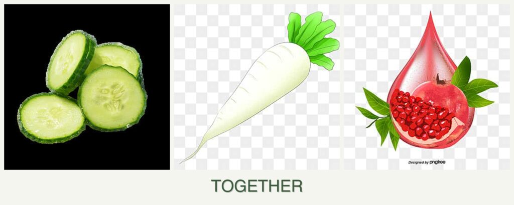 To overcome these issues, consider planting cucumbers and radishes together in one part of the garden, while positioning pomegranates in a separate area. This arrangement allows each plant to thrive under optimal conditions without competing for resources.