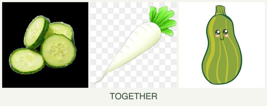 - Growth Requirements: Cucumbers and zucchini are both warm-season crops that need similar sunlight and soil conditions. Radishes, being cool-season crops, can be planted early in the season and harvested before cucumbers and zucchini mature.