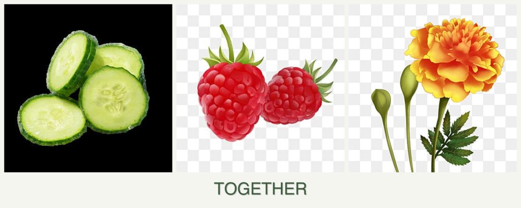 Can you plant cucumbers, raspberries and marigolds together?