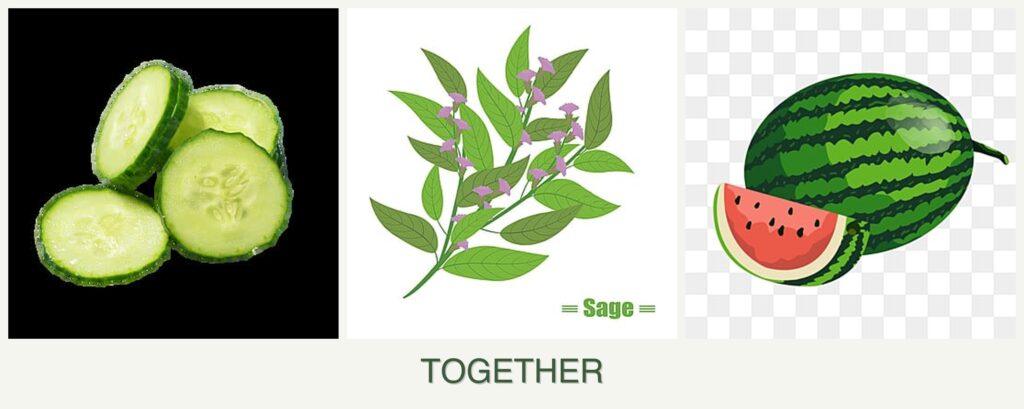 - Spacing: Cucumbers and melons require ample space to spread, whereas sage grows more compactly.