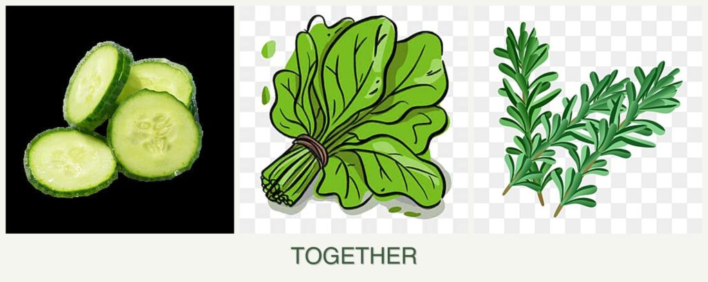 While cucumbers and spinach can be grown together with some benefits, rosemary does not fit well into this pairing.