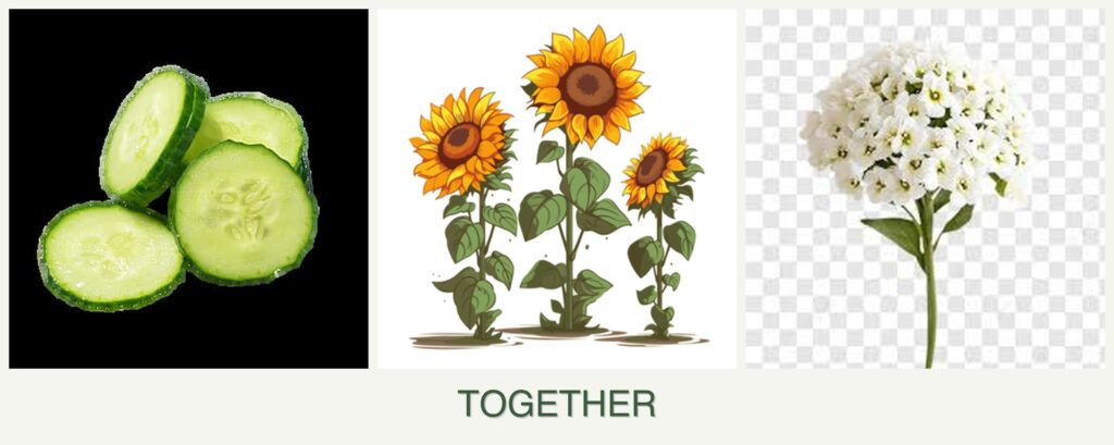 Planting cucumbers, sunflowers, and alyssum together offers several advantages: