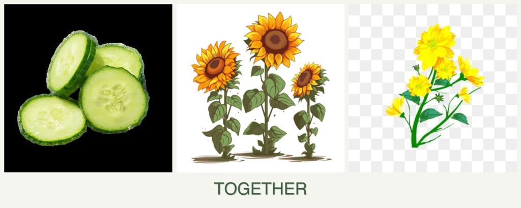 Planting cucumbers, sunflowers, and calendula together offers several benefits: