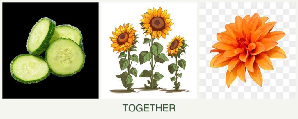 Can you plant cucumbers, sunflowers and dahlias together?