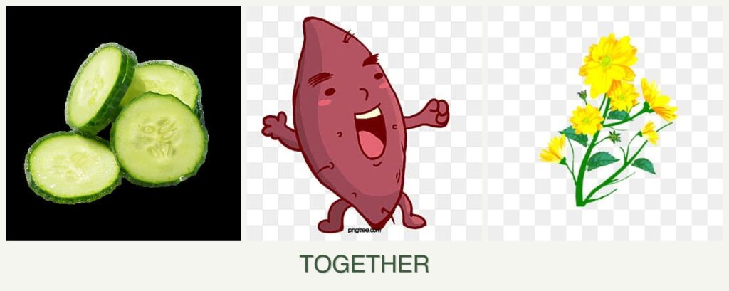 Can you plant cucumbers, sweet potatoes and calendula together?