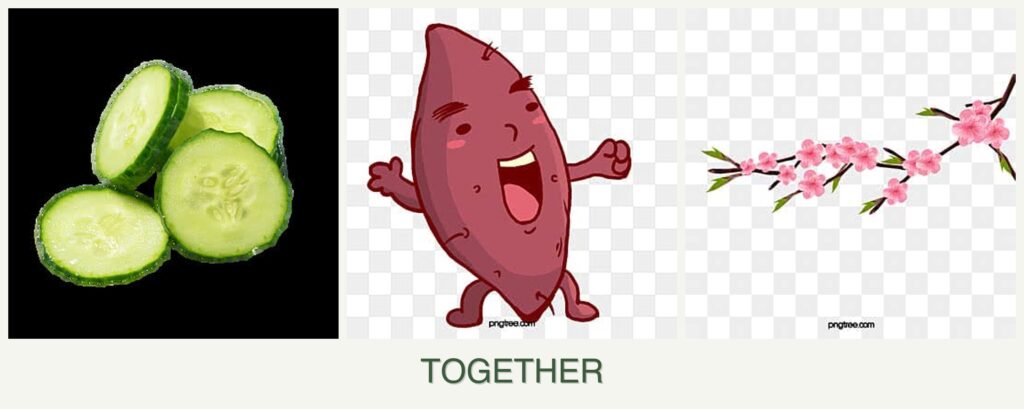 Can you plant cucumbers, sweet potatoes and peaches together?