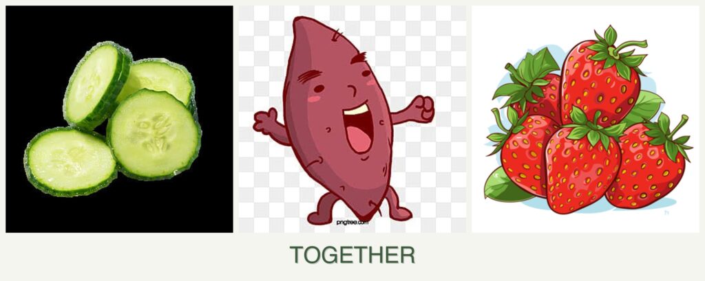 Growth Requirements: Cucumbers and sweet potatoes both prefer warm conditions and full sun, while strawberries can tolerate partial shade. This overlap in sunlight needs can work in their favor.