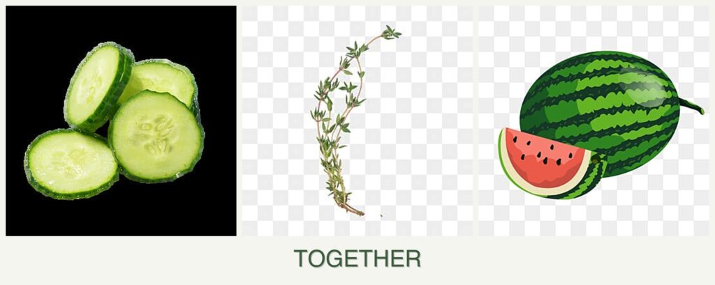 Planting cucumbers, thyme, and melons together offers several benefits: