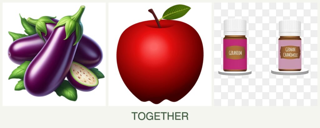 Growth Requirements: Eggplants thrive in warm climates with full sun, while apple trees require a more temperate climate with a chilling period. Geraniums prefer slightly cooler conditions and can tolerate partial shade.