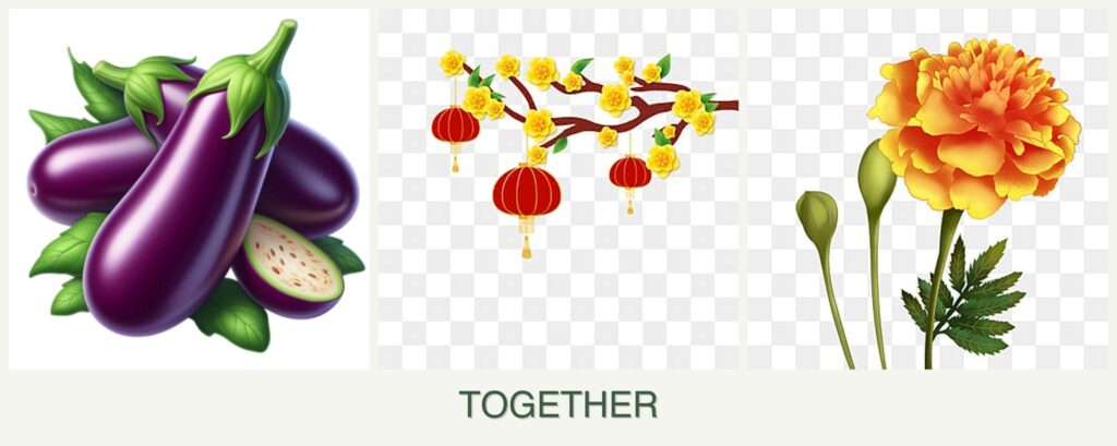 - Eggplant thrives in warm conditions and benefits from marigolds’ pest-repelling properties.