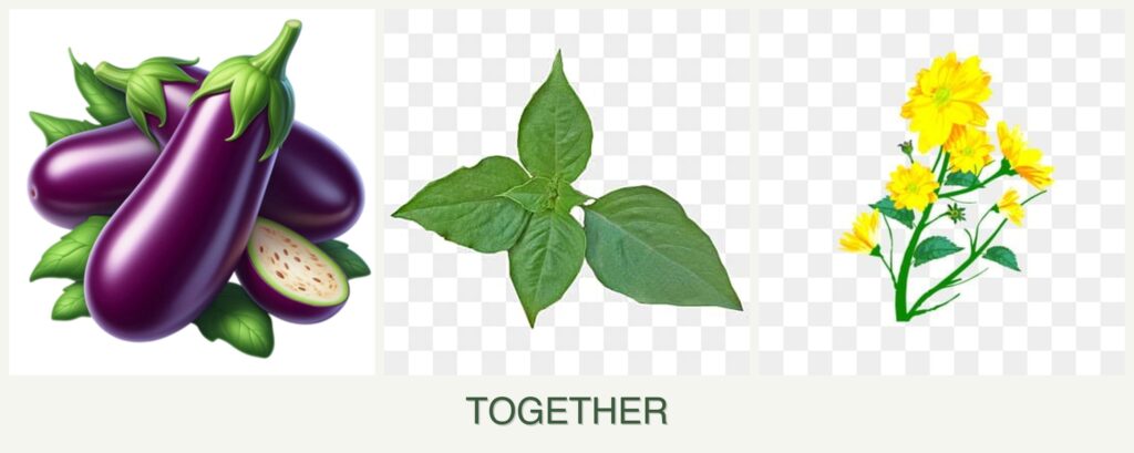 Yes, eggplant, basil, and calendula can be planted together. These plants complement each other well due to their similar growth requirements and the benefits they offer one another. Eggplants thrive with companions that can repel pests and attract beneficial insects, and both basil and calendula fit this role perfectly.