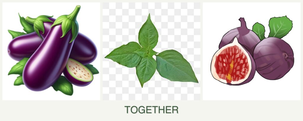 - Growth Requirements: Eggplants and basil both prefer warm temperatures and full sun, while figs can tolerate partial shade.