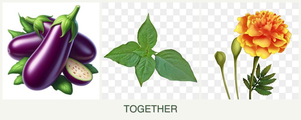 - Nutrient Needs: Basil and marigolds do not compete heavily with eggplants for nutrients, making them ideal companions.