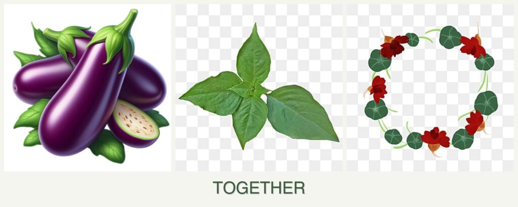 Planting eggplant, basil, and nasturtiums together offers numerous advantages: