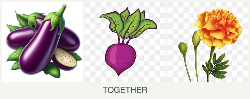 Planting eggplants, beets, and marigolds together offers several advantages: