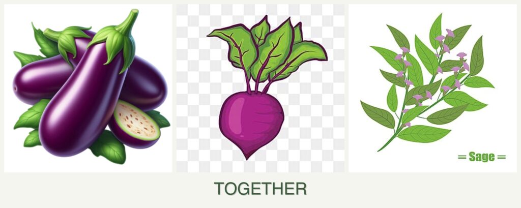 - Nutrient Needs: Beets are root vegetables that do not compete heavily with eggplants for nutrients, and sage’s minimal nutrient requirements make it a low-impact companion.