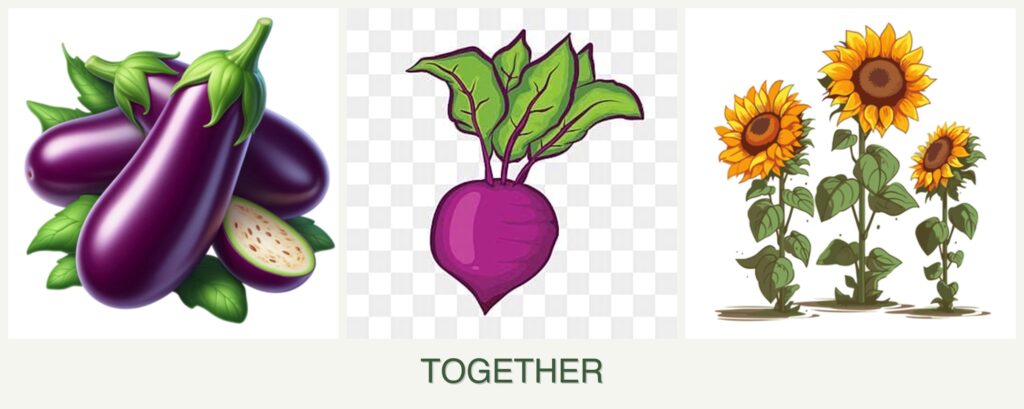 Pest Control: Sunflowers can attract beneficial insects like bees and ladybugs, which help control aphid populations that might otherwise affect eggplants. Beets have few pest issues, making them a low-maintenance companion.