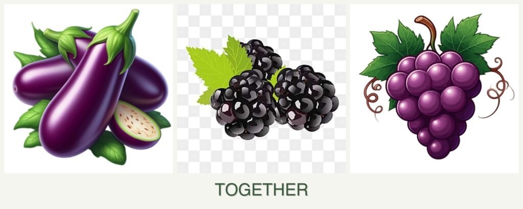 - Plant separately, but if necessary, early spring for blackberries and grapes, post-frost for eggplants.