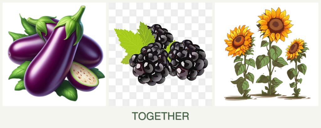 - Pest Control: Sunflowers can attract aphids, which may transfer to eggplants. Blackberries can harbor pests that affect both eggplants and sunflowers.