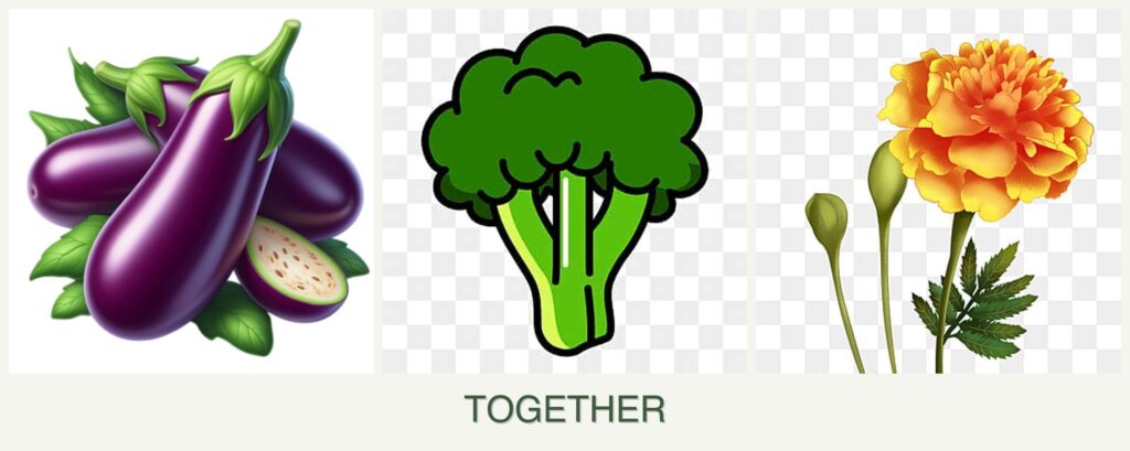 - Pest Control: Marigolds are renowned for their ability to repel nematodes and other pests, protecting both eggplant and broccoli.