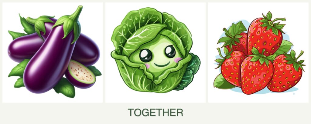While planting eggplant, cabbage, and strawberries together isn’t ideal, each plant can benefit from being planted with other companions: