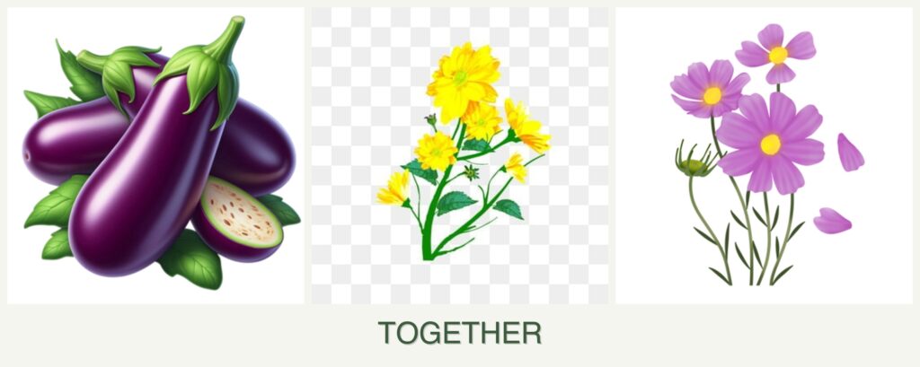- Nutrient Needs: While eggplants are heavy feeders, cosmos and calendula are not, reducing competition for nutrients.