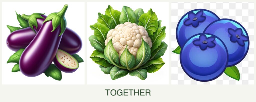 Growth Requirements: Eggplants thrive in warm temperatures, while cauliflower prefers cooler conditions. Blueberries require acidic soil, unlike the more neutral soil preferred by eggplants and cauliflower.