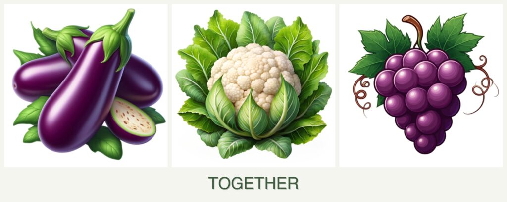 While eggplant, cauliflower, and grapes aren’t ideal companions, some benefits can be realized with careful planning: