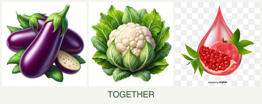 - Growth Requirements: Eggplants and cauliflowers thrive in cooler temperatures compared to pomegranates, which prefer warm climates.