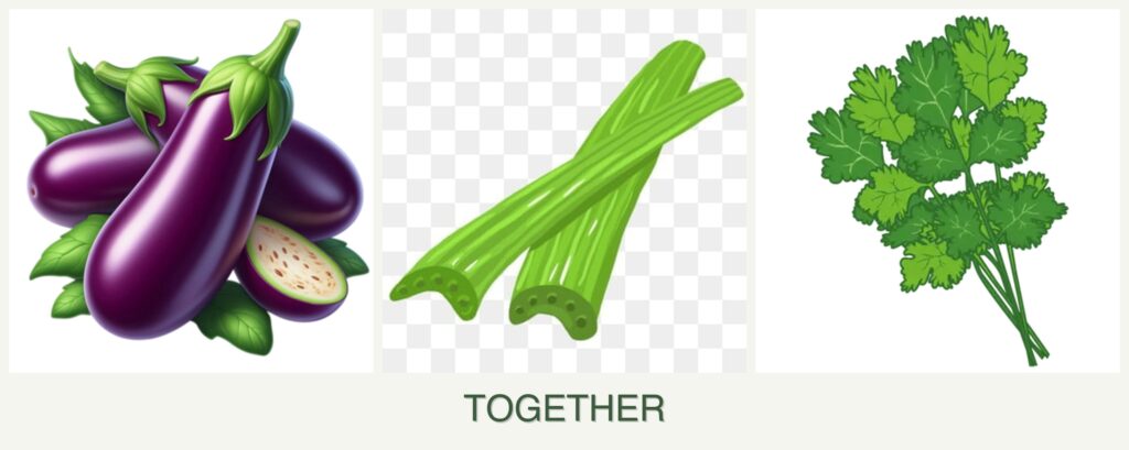 - Competition for Resources: Eggplant’s heavy feeding can deplete nutrients needed by celery and cilantro.