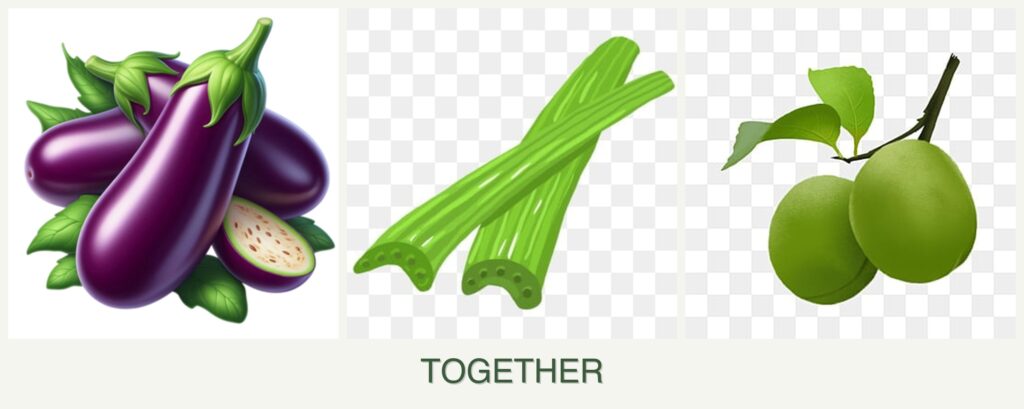 - Growth Requirements: Eggplants thrive in warm temperatures and need full sun, while celery prefers cooler conditions and partial shade. Plums, being fruit trees, have different needs altogether, requiring specific spacing and sunlight conditions.