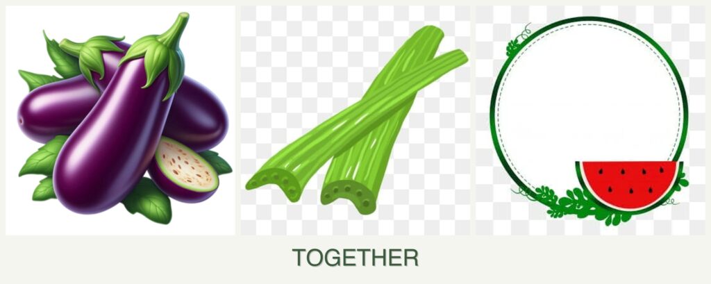 Watering Needs: Celery’s need for consistently moist soil contrasts with the moderate watering needs of eggplants and watermelons.
