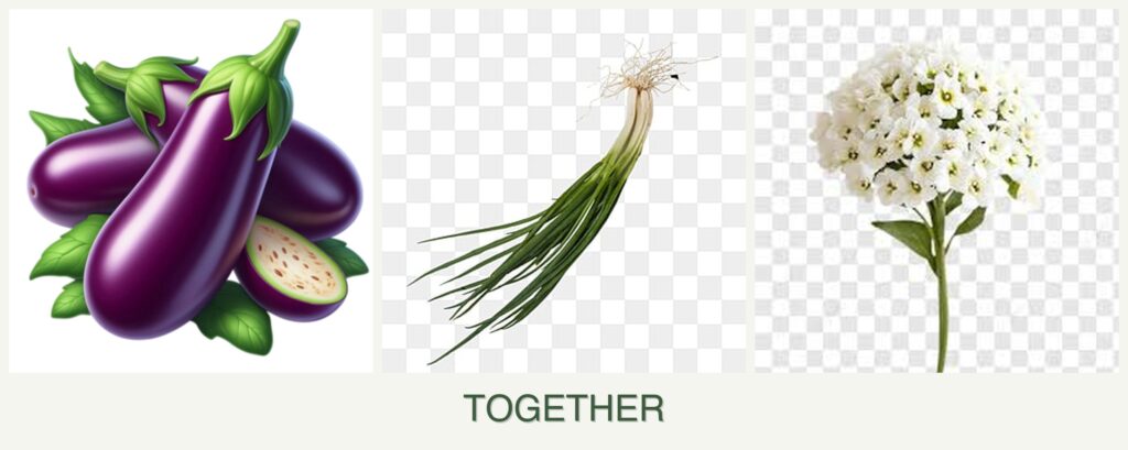 Planting eggplant, chives, and alyssum together offers several advantages: