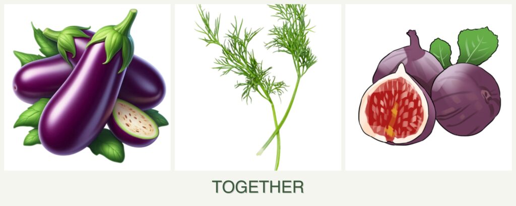 - Growth Requirements: Eggplants and dill both thrive in warm, sunny conditions, making them suitable companions. Figs, being a tree, require similar sunlight but have distinct space needs.