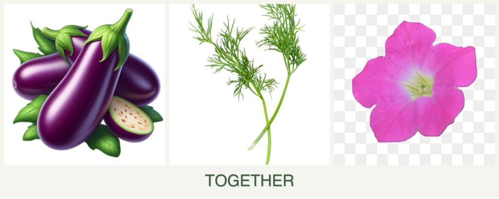 Can you plant eggplant, dill and petunias together?