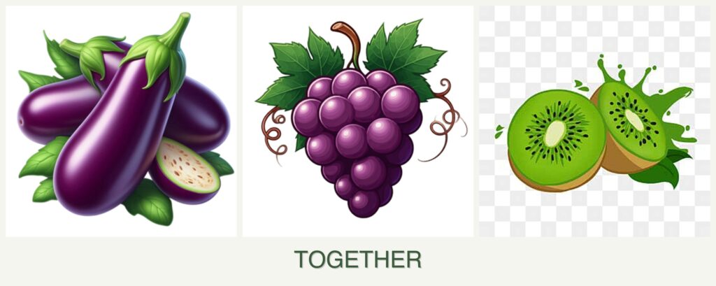 - Pollinator Attraction: Flowers from grapes and kiwis can attract pollinators, benefiting eggplants.