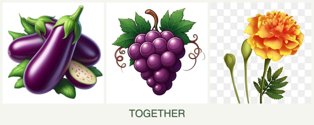 Nutrient Needs: While eggplants and grapes are heavy feeders, marigolds are not, reducing competition for nutrients.