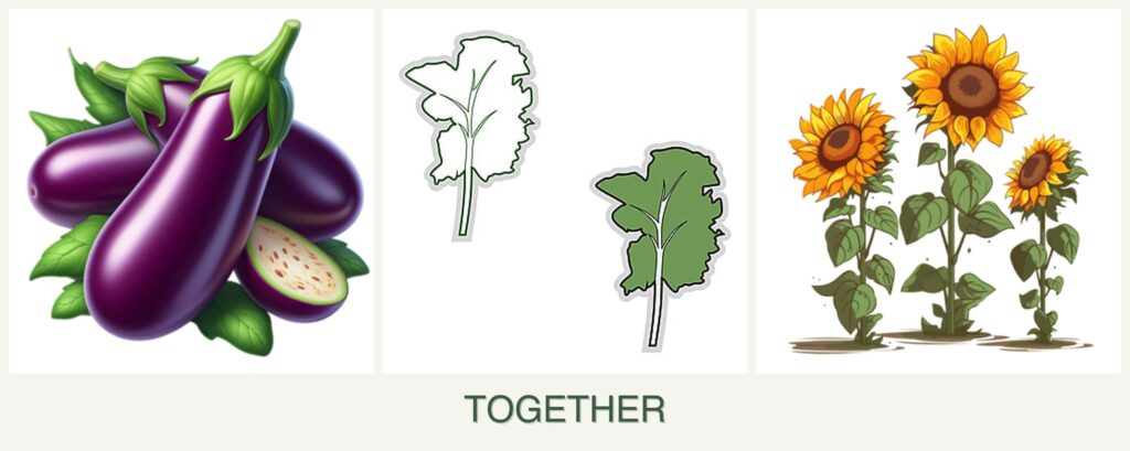 Planting eggplant, kale, and sunflowers together can offer several advantages: