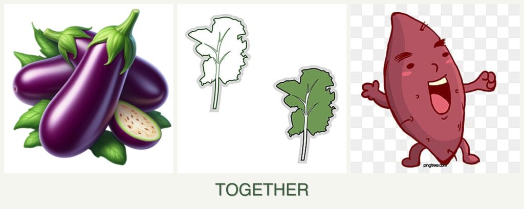 - Space Efficiency: By utilizing vertical space (eggplant) and horizontal space (sweet potatoes), you can maximize garden efficiency.