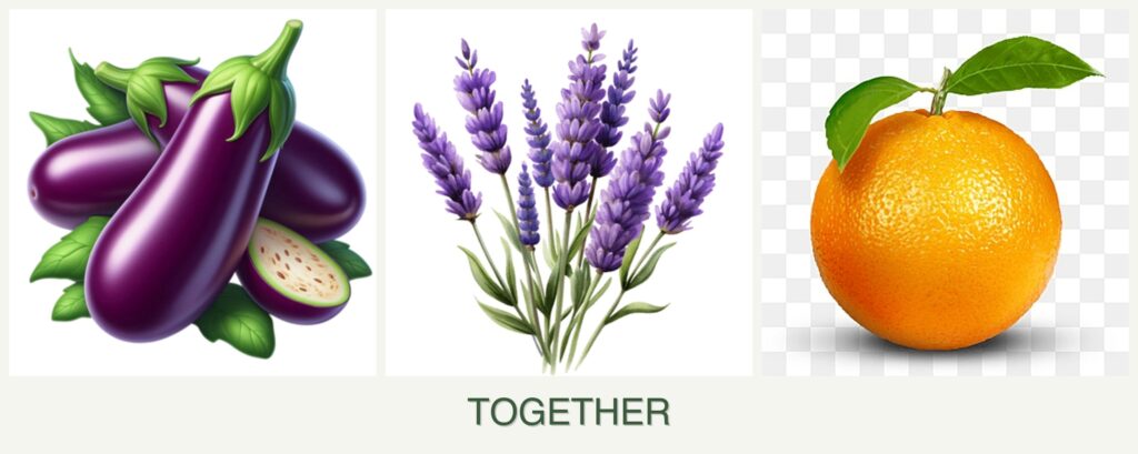- Resource Competition: Eggplants and oranges compete for nutrients, which lavender doesn’t require as much.
