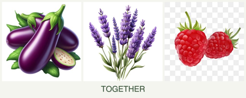 - Growth Requirements: Eggplants need full sun and rich soil; lavender prefers dry, sandy conditions; raspberries thrive in moist, well-drained soil.