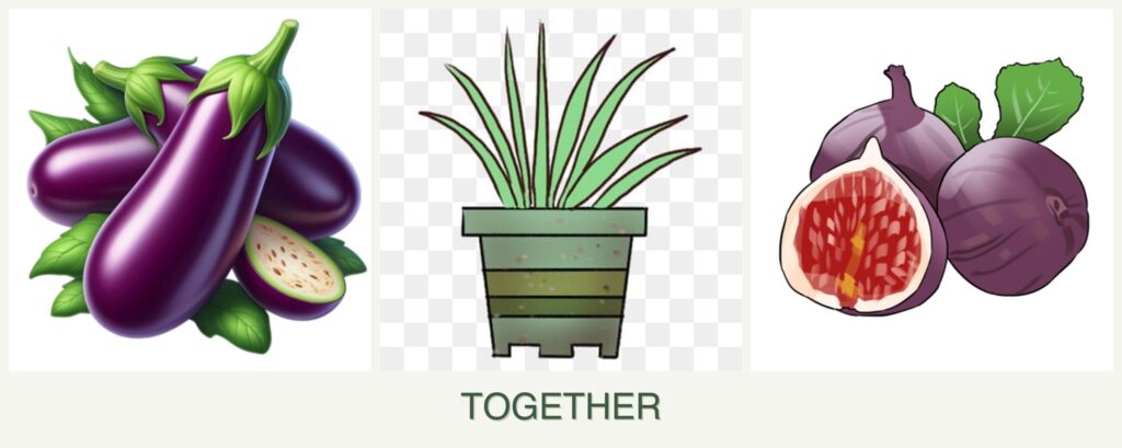 - Pollinator Attraction: Eggplants and figs attract pollinators, which can benefit all plants in the vicinity.
