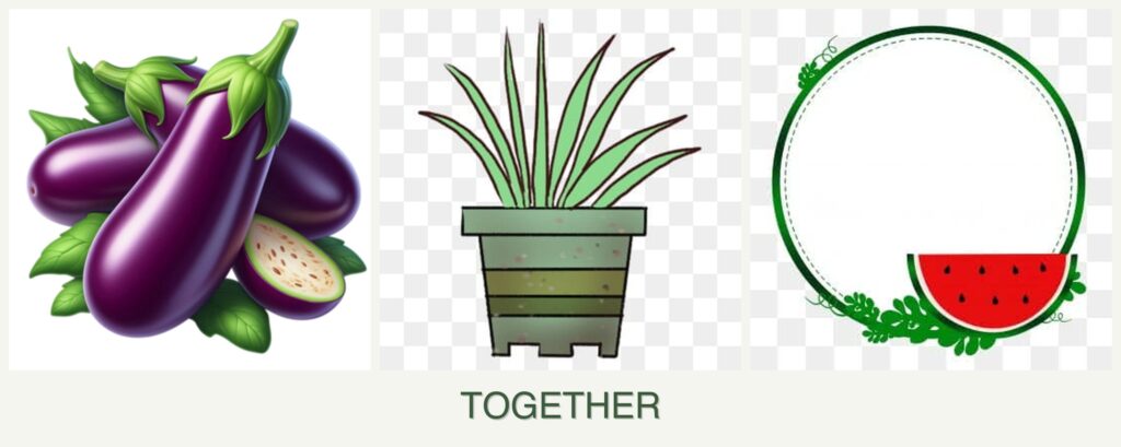 - Pollinator Attraction: The flowers of eggplants and watermelons can attract pollinators, benefiting all plants.