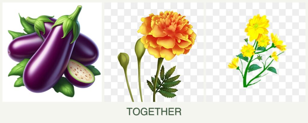 Planting eggplant, marigolds, and calendula together offers numerous benefits: