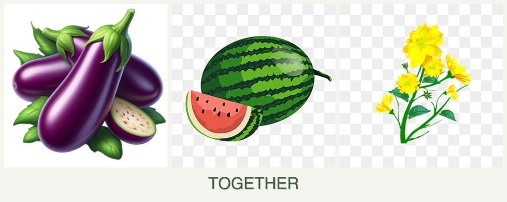 Competition for Resources: Eggplants and melons, being heavy feeders, may compete for nutrients, requiring careful fertilization management.