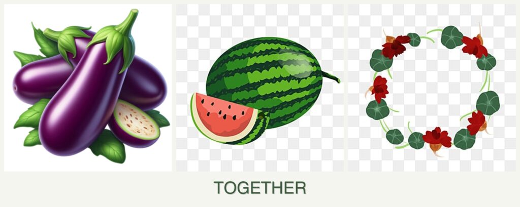 - Different Watering Needs: Melons require more water than eggplants and nasturtiums, necessitating careful watering management.