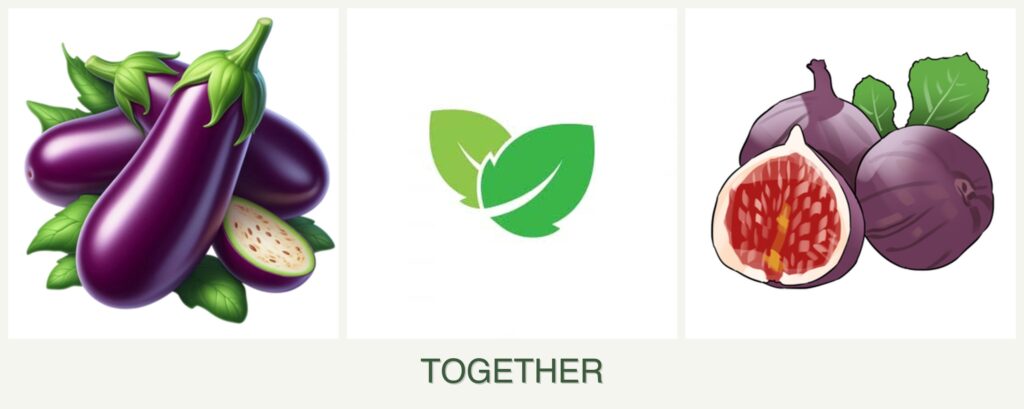 Pollinator Attraction: Figs and mint flowers attract pollinators, which can benefit eggplants by improving fruit set.