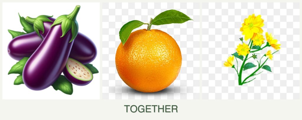 - Growth Requirements: Eggplants and oranges both require full sun, while calendula can tolerate partial shade.